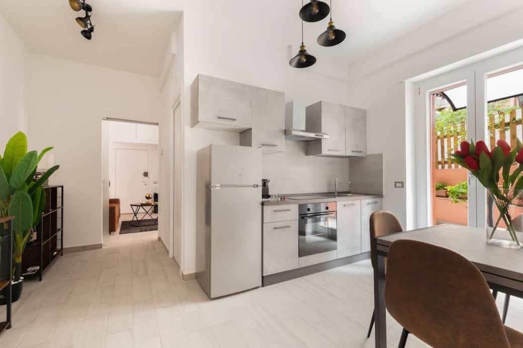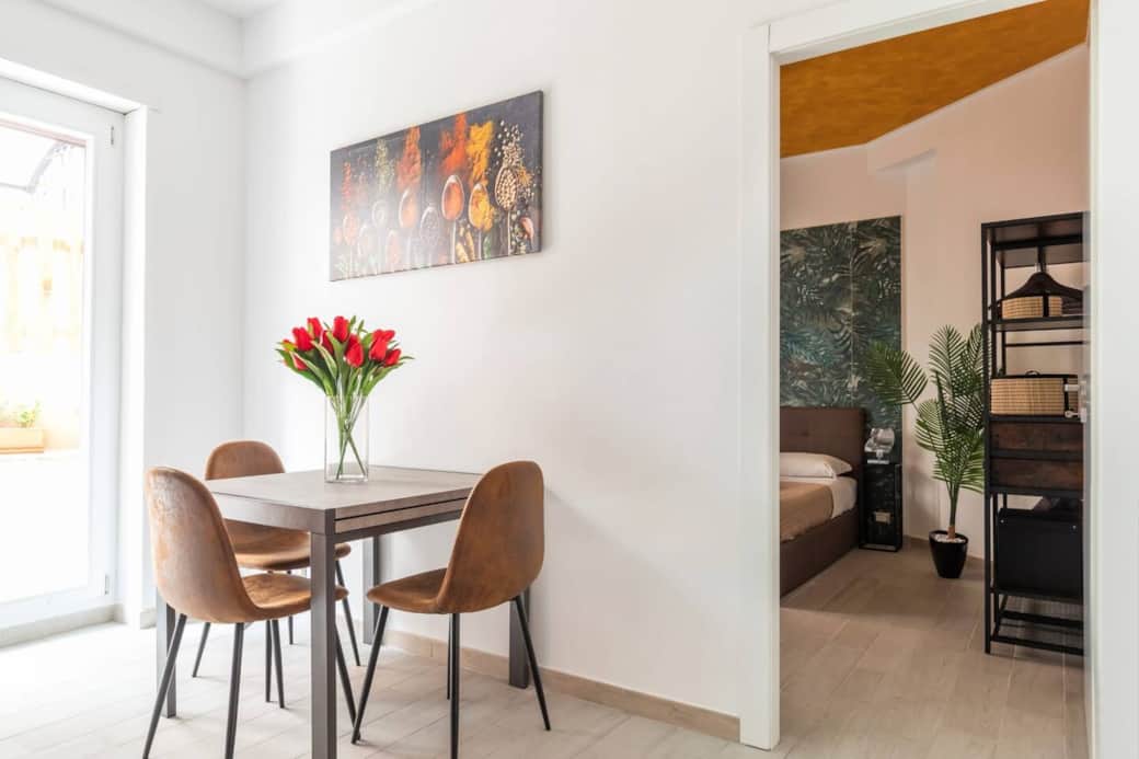 Posizione eccezionale. Nel centro di Roma ma in zona tranquilla. La stazione di Roma Trastevere è a 750 mt perfettamente collegato con i mezzi pubblici. Appartamento climatizzato con un comodo patio esterno. WiFi gratis. Una camera da letto con TV a schermo piatto, cucina, forno e microonde, salotto con divano letto matrimoniale e TV, 1 bagno con doccia. In dotazione asciugamani e biancheria da letto. Zona pranzo interna e all'aperto. Gli ospiti possono rilassarsi nel giardino della proprietà. L'appartamento si trova al piano terra in un grande stabile moderno. Appena si entra c'è una zona soggiorno con un comodo divano che può essere trasformato in letto matrimoniale. Percorrendo un brevissimo corridoio, dove si può accedere al bagno dotato di doccia modernissima con funzione idromassaggio. Si entra poi nella zona cucina-pranzo. La cucina è completamente allestita, con fornelli a gas e forno classico, frigorifero e forno a microonde. Macchina per il caffè a capsule. La camera da letto è dotata di un comodo letto matrimoniale e un moderno stand porta abiti. L'appartamento è climatizzato con riscaldamento e aria condizionata. L'erogazione di acqua calda è garantita da un moderno scaldabagno. Dal soggiorno e dalla zona cucina si accede all'ampio patio esterno con ombrellone e mobili da giardino.
